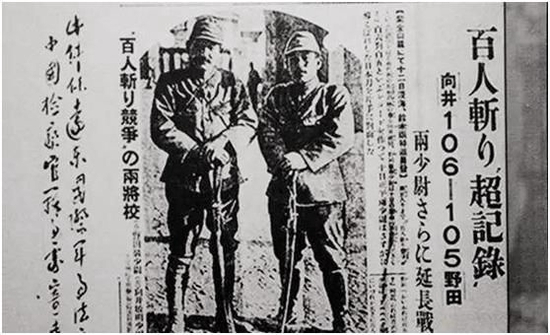 1937年12月13日,野田毅和向井敏明约定:攻占南京后,谁砍的中国人头颅数最先满100,谁获胜。最终,向井以砍杀106人“获胜”,而野田因为“军刀卷刃”只杀了105人。
