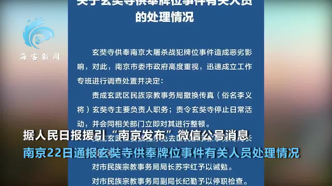 南京通报玄奘寺供奉牌位事件处理情况:主要负责人被撤换