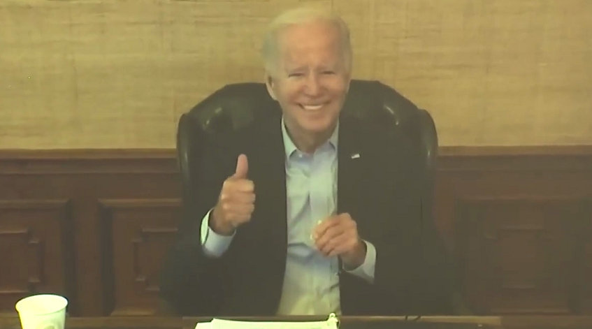 拜登确诊后参加视频会议,声音低沉沙哑,被问及状态时竖起大拇指