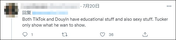 “TikTok和抖音都有教育类内容,也有性感内容。塔克·卡尔森只展示他想展示的东西。”