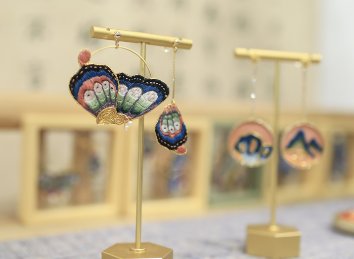 刘晓燕创作的京绣耳环。新京报记者 浦峰 摄