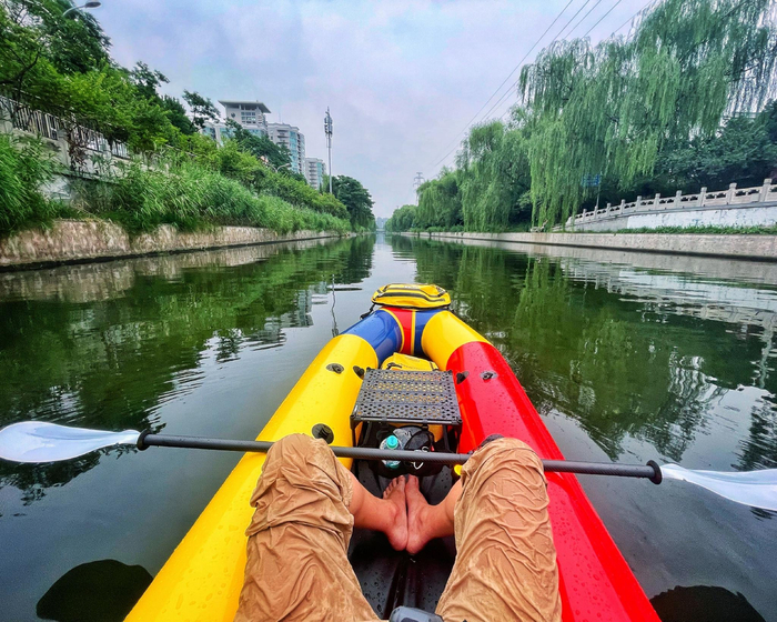 至于安全问题,杨先生也格外关注,“这段河道在两个水闸之间,在汛期确实有风险,我在下水前进行了安全风险评估,且看天气预报当天不会下大雨。划行途中看见有‘文明水上活动’的标语,也想提醒大家,任何水上活动都应该做好保护措施,穿好救生衣。就像开车需要安全带一样,穿救生衣无关水性如何。”