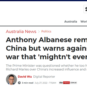 阿尔巴内塞则说不会对此问题“做任何假设”,他还表示“澳大利亚人非常清楚(可能的)风险,重要的是我们要列出在国家安全领域面临的挑战,但同样重要的是,我们不能为了在国内政治上加分而引发恐惧。”