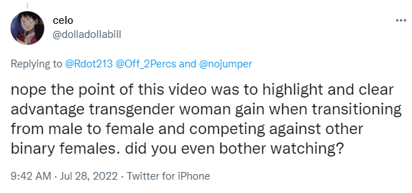 他还拿出23日就表演过的戏码,再一次嘲讽跨性别运动员参加女子赛事。