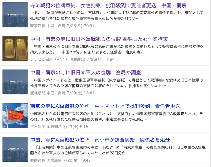 此事目前已经传到日本,时事新闻社、产经新闻、每日新闻、共同通信等都有发稿,但这些在雅虎能够看到的新闻却并没有上雅虎新闻的头条。