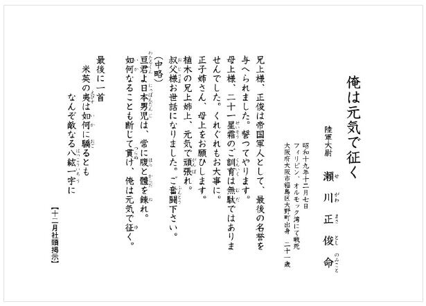 每个月,靖国神社都会更新神社内的看板,就是把类似上述图片中这名大尉的临终家书挂出来供右翼敬仰,甚至后来还出了合订本,让右翼踊跃购买。他们会把所有写家书的日军名字后面加上一个“命”字,意即把他们封神了。不过,从这封家书的文笔可以看出,这名日军受过良好的教育。
