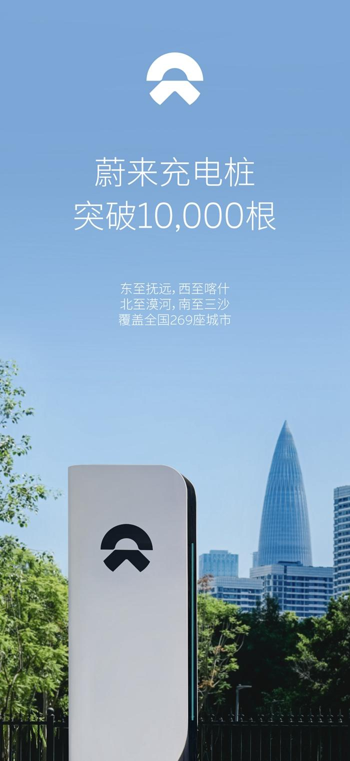 7月29日,随着蔚来深圳曙光科技大厦超充站投入运营,全国蔚来充电桩总数已突破10,000根,覆盖269座城市。