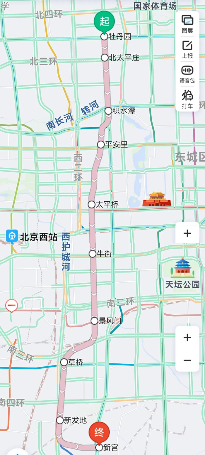 今天19号线一期的北太平庄、平安里、太平桥、景风门4座车站首班车起开通试运营。