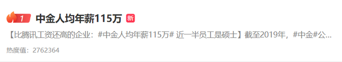 中金卷入晒薪风波,去年人均年薪降至98万(澎湃新闻)