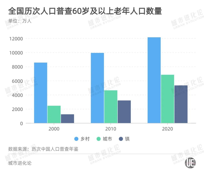 在过去三次全国人口普查中,随着老年人口快速增长,农村60岁及以上老年人口规模从2000年8556.8万人迅速增长至1.21亿人,20年扩大一半左右。
