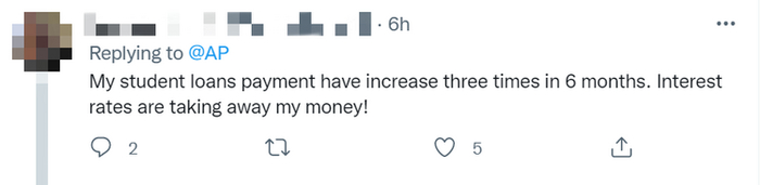 半年里我的助学贷款金额已经涨了三次。(过高的)利率正在夺走我的血汗钱!