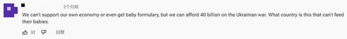 在我们不能支撑自己的经济甚至买不起婴儿奶粉的情况下,我们却能在乌克兰战争上豪掷400亿美元。连自己的婴儿都喂不起,这究竟是个什么样的国家!
