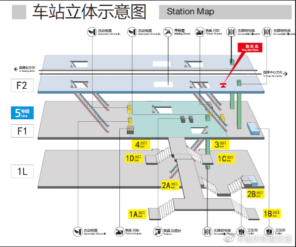 今(31)日,@重庆轨道交通发布消息,地铁5号线跳磴站为地面站,车站位于大渡口区华福大道幸福华庭公租房旁,已开通1C、1D、2A、2B、3号、4号出入口。