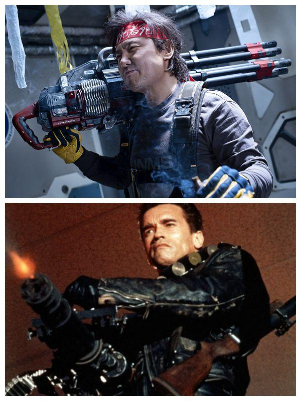 沈腾在《独行月球》中的造型致敬了《终结者》的施瓦辛格。