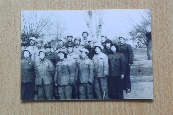 7月24日,江苏苏州,1951年,于芝林(左2)和战友们的合影老照片。新京报记者 王嘉宁 翻拍