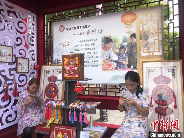 刺绣、传统美食、牛郎织女传说……启动仪式现场,人们漫步在非遗展、书画展、摄影展中。七夕节又称乞巧节,古时女子会穿针乞巧。35岁的张丽旭手拿针线,向人们展示山西省级非物质文化遗产和顺刺绣技艺,她的母亲就是和顺刺绣传承人。