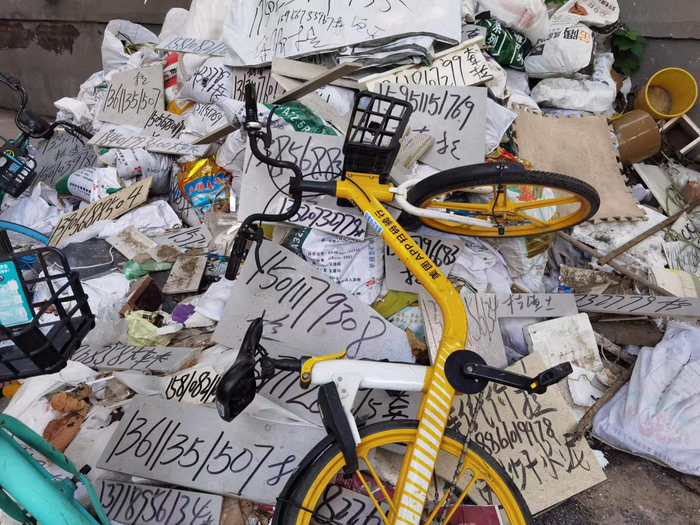 垃圾清运公司的市场报价也十分混乱。在丰台区海户西里34号院3号楼下,楼内住户装修后堆放的垃圾已经有半年,垃圾堆上插着、挂着、摆着的各种收费清运垃圾小广告牌足足有23个。“总共1200元,你甭管大车小车,我肯定给你清走就行。”“我们可以开金杯车去拉,一车600元。”“一辆绿皮车可以拉走,能装120袋,1100元。”……记者随机致电了其中三家垃圾清运公司,同样是100袋垃圾,对方给出报价均不一样,最多相差600元。