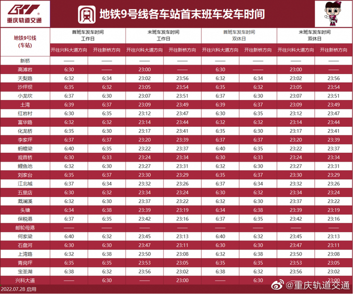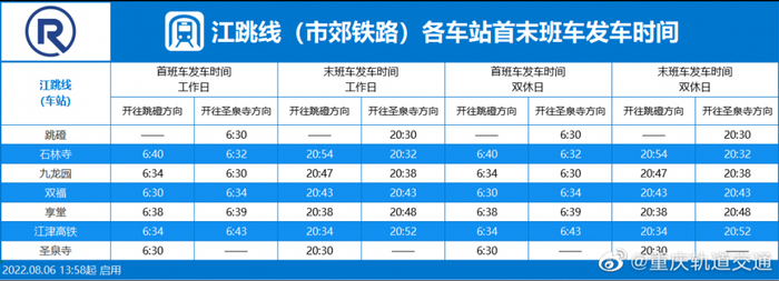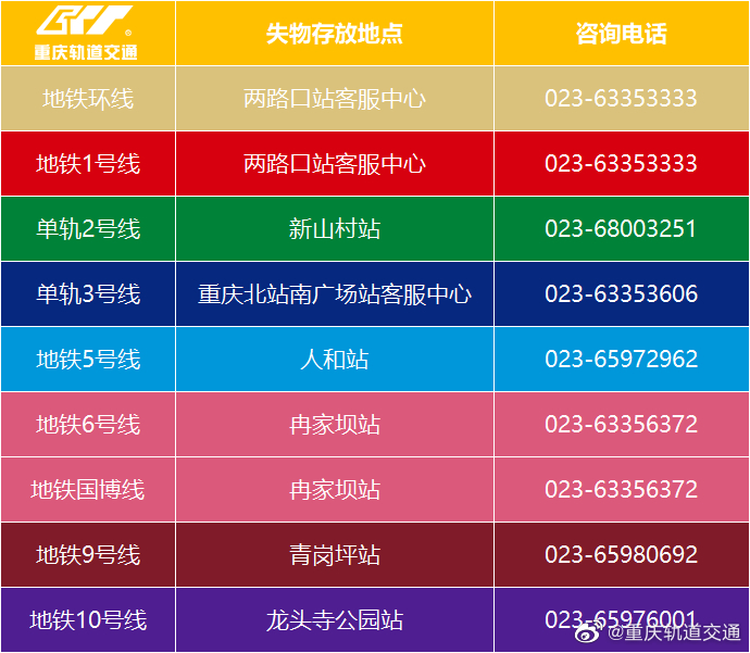 8月6日,@重庆轨道交通 发布消息,重庆市轨道交通线各线路首末班车发车时间、线网图、各线路失物咨询电话更新了,小伙伴们赶紧Get起来。