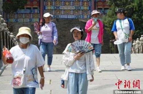 8月3日,北京,游客在午间游览北海公园。 中新社记者 崔楠 摄