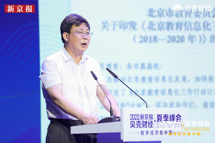 出台系列教育信息化相关政策,优化北京教育信息网、联通全市近3000个大中小学和教育单位,上线北京市教育大数据平台、汇聚5.6亿条教育数据……8月7日,在2022新京报贝壳财经夏季峰会教育专场主旨演讲环节,北京市教委二级巡视员葛巨众现场分享了北京在教育数字化转型上的努力。