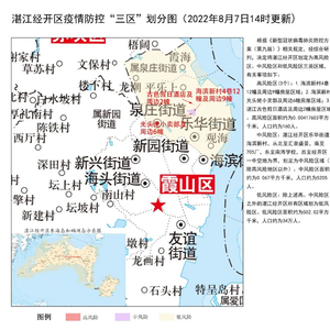 根据《新型冠状病毒肺炎防控方案(第九版)》相关规定,经综合研判疫情形势,决定自2022年8月6日17:00时起,将湛江经济技术开发区相关区域划定为高风险区、中风险区和低风险区三类区域(详见附图),现将有关事项通告如下: