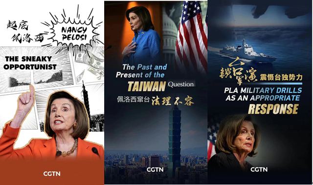 CGTN三评佩洛西:政治投机、法理不容!当军演震慑