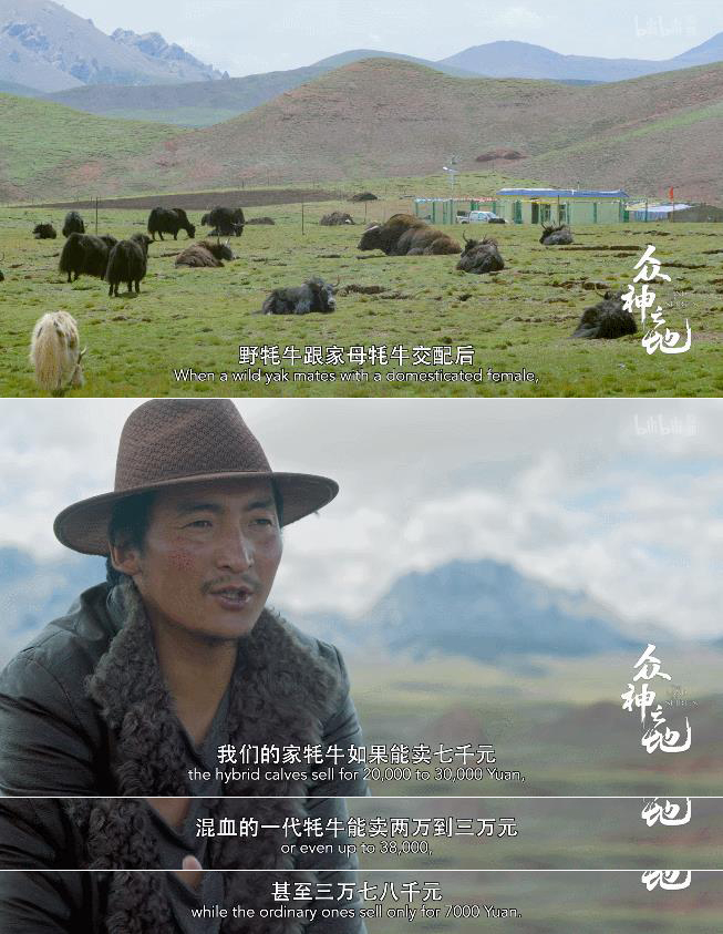 但更多的情况是,野牦牛往往带着家牦牛离开,出生的家牦牛一代,也有可能因为渴望荒野追随父辈而去,这也极大打击了牧民们的收入。于是,纪录片第一集里最最催泪的一幕来了。