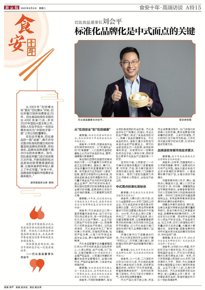 新京报:十年来,巴比食品从包子铺成长为上市公司,在提升食品安全方面有哪些基本动作和创新举措?