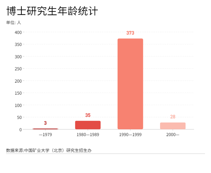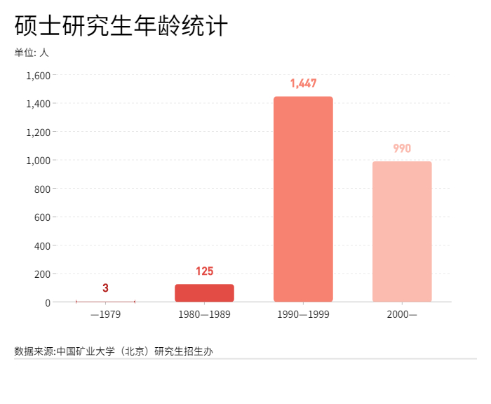 硕士研究生年龄统计如图。年龄最小的硕士出生在2003年10月,还未满19岁。