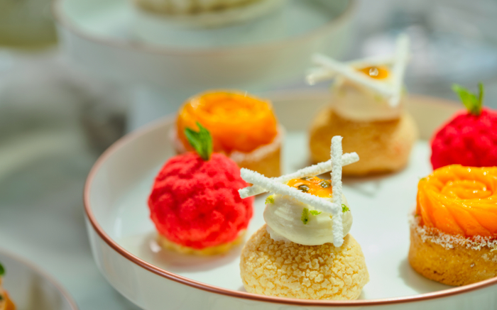 下午茶纳入了鲜花和水果元素。