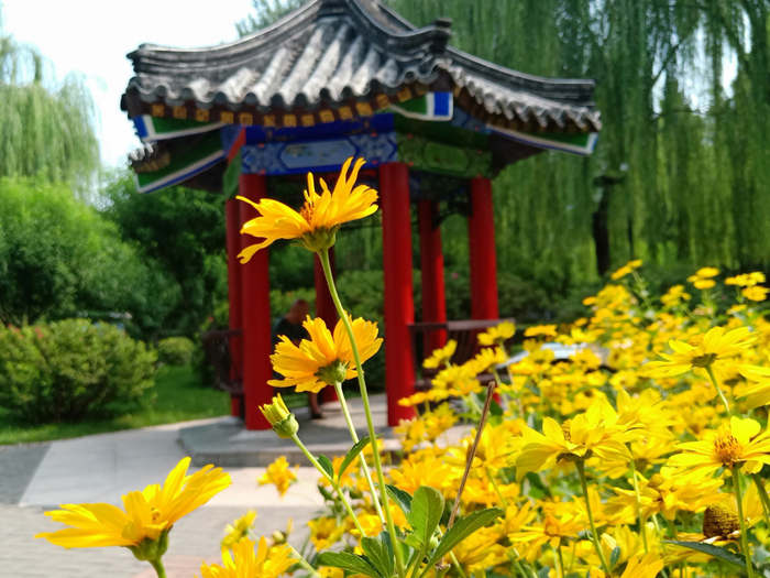 顺义区街心公园由怡园公园、光明文化广场,北京醇绿地三部分组成。
