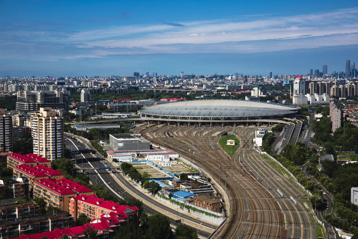 北京南站位于中国北京市丰台区,外形为椭圆结构,远观似飞碟,始建于1897年,时称马家堡站,于2006年5月10日,正式开始封站改造,于2008年8月1日,随着京津城际铁路开通而正式重新启用。