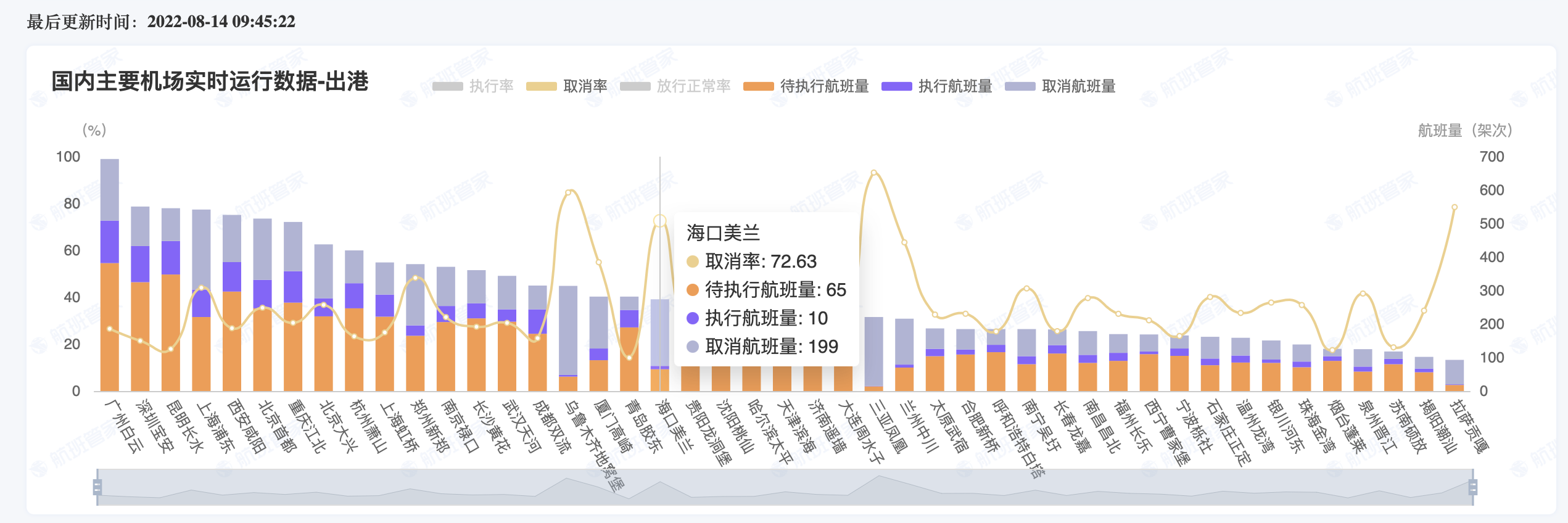 关注被取消的航班还是占据大多数。根据航班管家的数据,昨日海口出港航班的取消率达到91.76%。