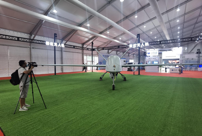 最大续航时间30小时!彩虹-4无人机亮相世界机器人大会