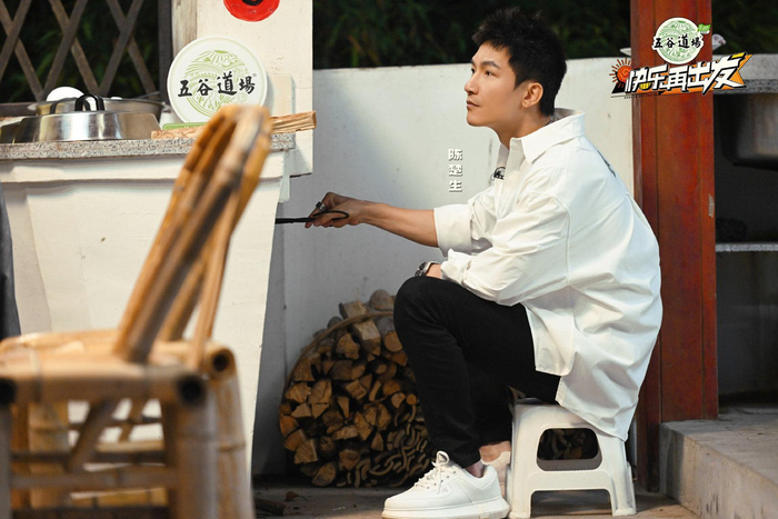 陈楚生在节目中生火。