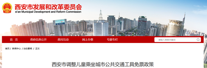 据西安发改委网站消息,西安市调整儿童乘坐城市公共交通工具免票政策,以下为全文: