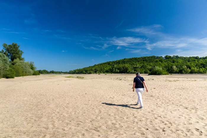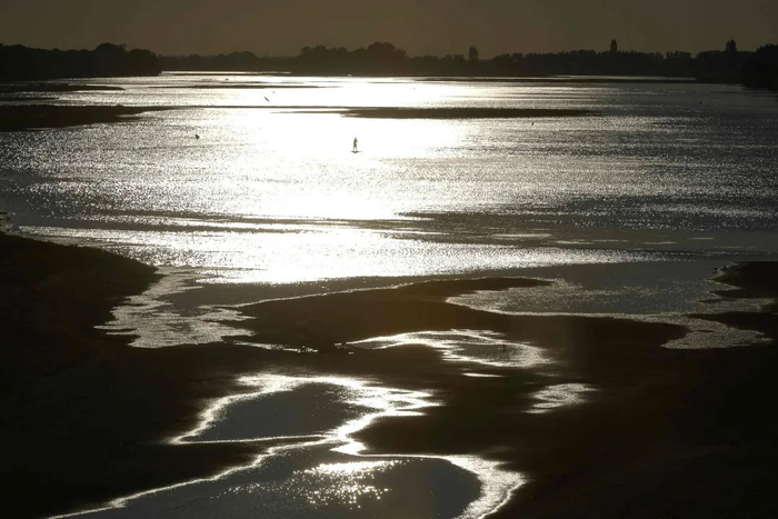 持续高温下,法国最长的河流卢瓦尔河水位不断下降。