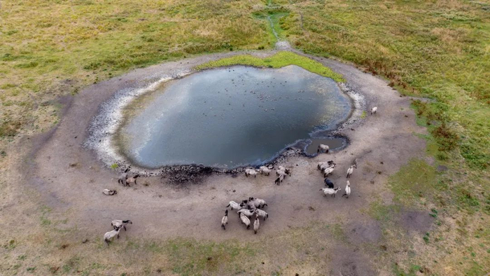 这张图看起来似乎是美国平原上的野马聚集在最后的水源地周围。但实际上,这是在英国剑桥郡北部的威肯盆地拍摄的,该地以潮湿而闻名,但在遭受热浪与干旱后,现在变得非常干燥。