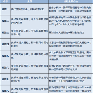一条集电影艺术、青年文化、潮流特色于一体的“潮”影线路。游客可网罗世界名品,享受各地美食,体验最时尚新潮的电影之旅。