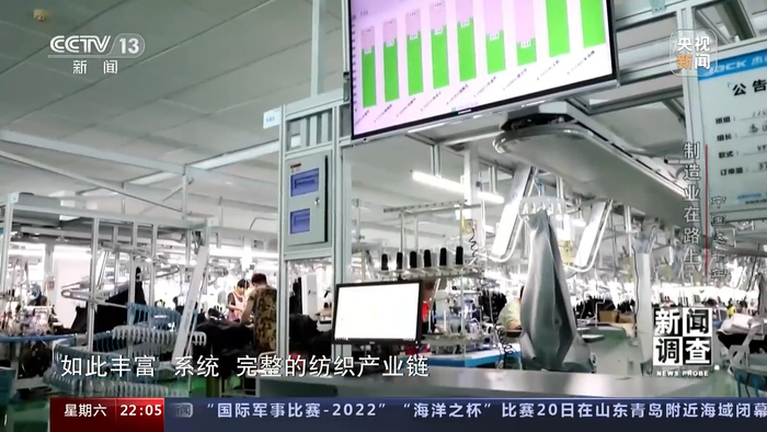 如何变强?广泛运用最新自动化数字化技术,提高劳动生产率,降本增效,是赢得市场青睐的关键。 全自动化生产线、纺机数据共享,“智慧大脑”一屏掌控,在山东枣庄,这间高档新型特种纱线生产厂房内,曾经纺织企业“千人纱,万人布”的情景已经成为历史。通过对信息化技术的充分运用,以及对系统大数据的分析,企业实现了精细化管理,目前,生产万锭用工只需要35人。
