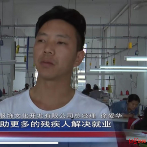 天眼查显示,七彩服饰成立于2014年,注册资本为100万元。在七彩服饰的生产车间里,共有员工50余人,多是贫困户和残疾人。负责人徐爱华表示,员工中有10多位是残疾人,有几位离家远的残疾工人平时住在厂里。