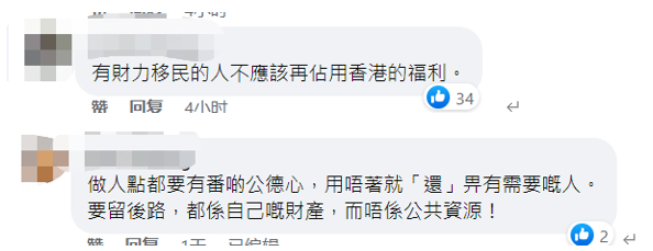 看他“惨兮兮”,不少香港网友喜闻乐见,纷纷留言力挺港府做法,斥责移民者隐瞒事实霸占公屋的行为自私至极,“有财力移民的人不应该再占用香港的福利”、“要留后路,也是留自己的财产,而不是公共资源!”