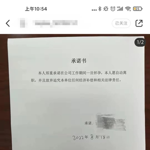 ▶▶▶“怀孕即离职”承诺书有效么?
