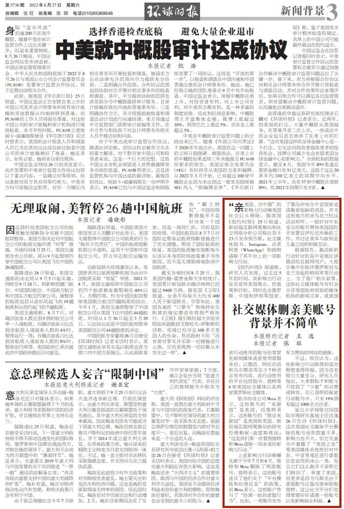 复旦大学网络空间国际治理研究基地主任沈逸26日告诉《环球时报》,这次美国社交媒体平台删除的账号虽然数量不多,影响力也不大,但它无意当中暴露了“美国之音”等美国媒体系统性针对中东、中亚等地区进行虚假信息宣传的冰山一角。而且它们这么做并不表明它们转向了、背离了美国,而更多是因为马斯克由于虚假账号泛滥而放弃收购推特,这让社交平台们觉得需要好好清理一些账号以免影响商业利益。