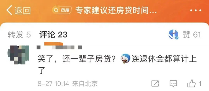 27日,“专家建议还房贷时间延长至40年”话题登上微博热搜第一。北师大房地产研究中心主任董藩在接受媒体采访时表示,为减轻年轻人的买房负担,可以通过降低首付的比例、前五年只还利息、延长还贷时间等措施来实现。该言论引发网友热议,你怎么看?