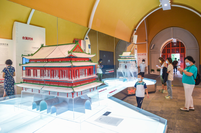 如今,7个券洞都被赋予了新“身份”——它们是“序厅”“北京时间”“时间建筑”“中国时间”“我的时间”“发现中轴线”6个主题展厅以及中心券洞沉浸展厅,共展出10件藏品、48件辅助展品和装置、12个交互体验展项以及6个数字影片。