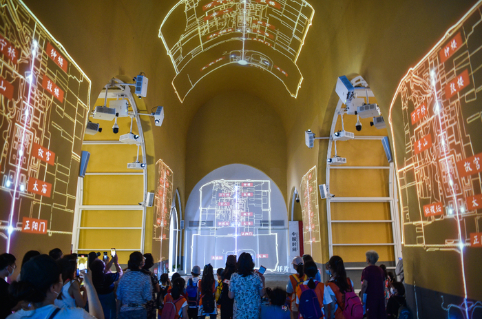 恢复历史原貌后,中心券洞纵横交错的建筑空间被充分利用,数字艺术为文物古建赋予全新的体验。