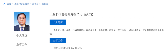 金壮龙,男,汉族,1964年3月生,经济学博士,中共党员,研究员。现任中共十九届中央委员,工业和信息化部党组书记。