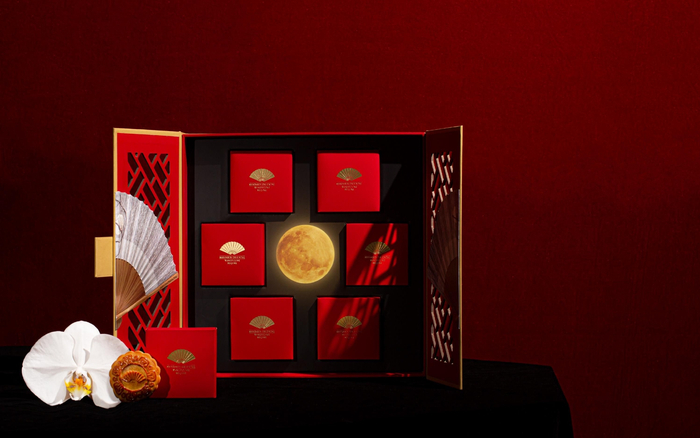 另一款享月中秋礼盒十分小巧,明亮橘色为底,印有瑰丽专属暗纹,内里巧妙藏有六块月饼,分别是陈皮豆沙、奶黄流心、蛋黄白莲蓉三种口味。其中,细腻绵软的奶黄流心月饼一直是北京瑰丽酒店的招牌,蛋黄白莲蓉内馅更为传统,可以品尝到经典的中秋味道。