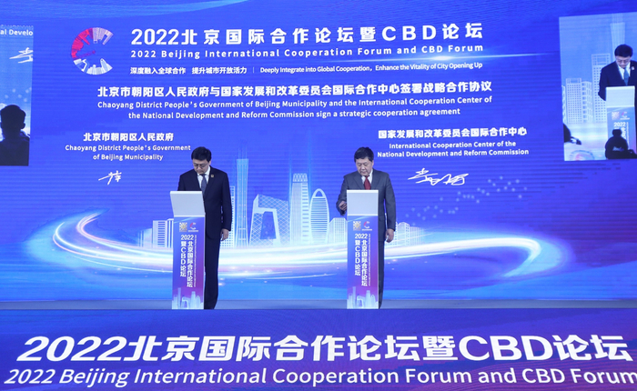 论坛上,北京市朝阳区人民政府与国家发展改革委国际合作中心签署了战略合作协议,未来双方将推动更多国际资源在CBD聚集,助力企业“走出去”与“引进来”双向发力,并围绕“一带一路”建设、RCEP等,开展国际合作机制、平台、项目对接,推动国际合作项目落地朝阳。同时,围绕“绿色消费”,在消费的新场景应用、绿色金融、绿色消费等方面开展一系列先行先试。